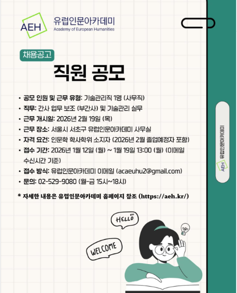 <유럽인문아카데미 기술관리직(부간사) 모집 공고>