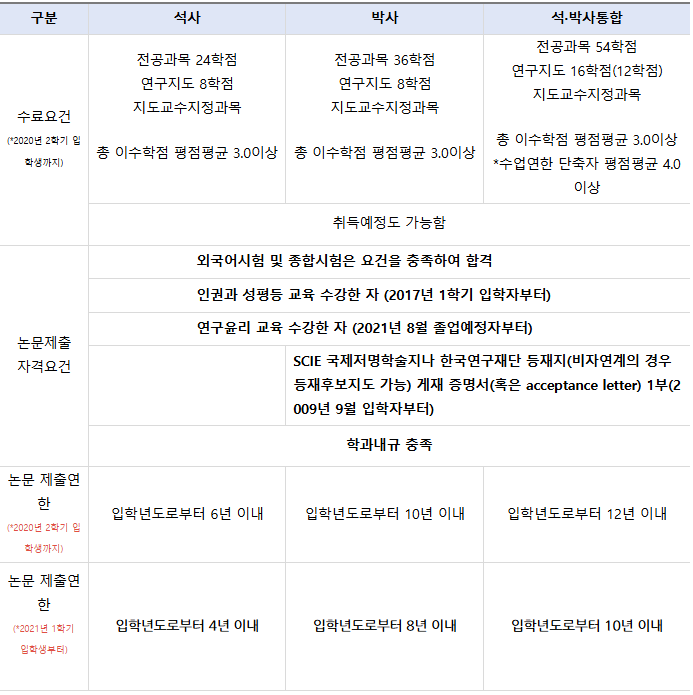 ※ 논문 제출연한 마지막 학기 불합격자의 논문 제출연한 1학기 연장(재심사) 폐지