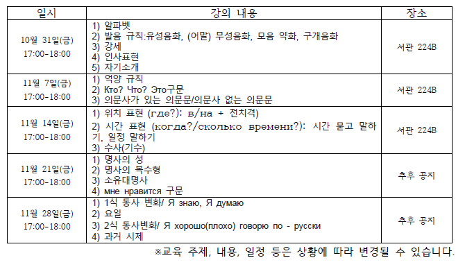 역사학과 대학원생 중 러시아어의 필요성이 존재하는 다양한 연구자들을 지원하기 위해